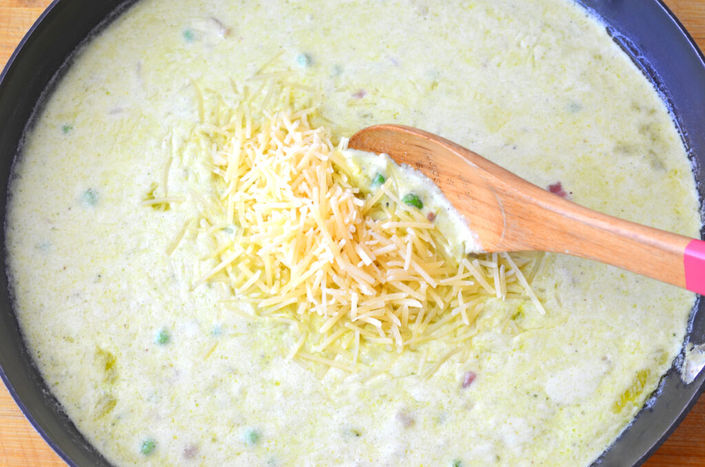 Don’t like peas or pancetta, no problem, you can leave them out of the sauce.